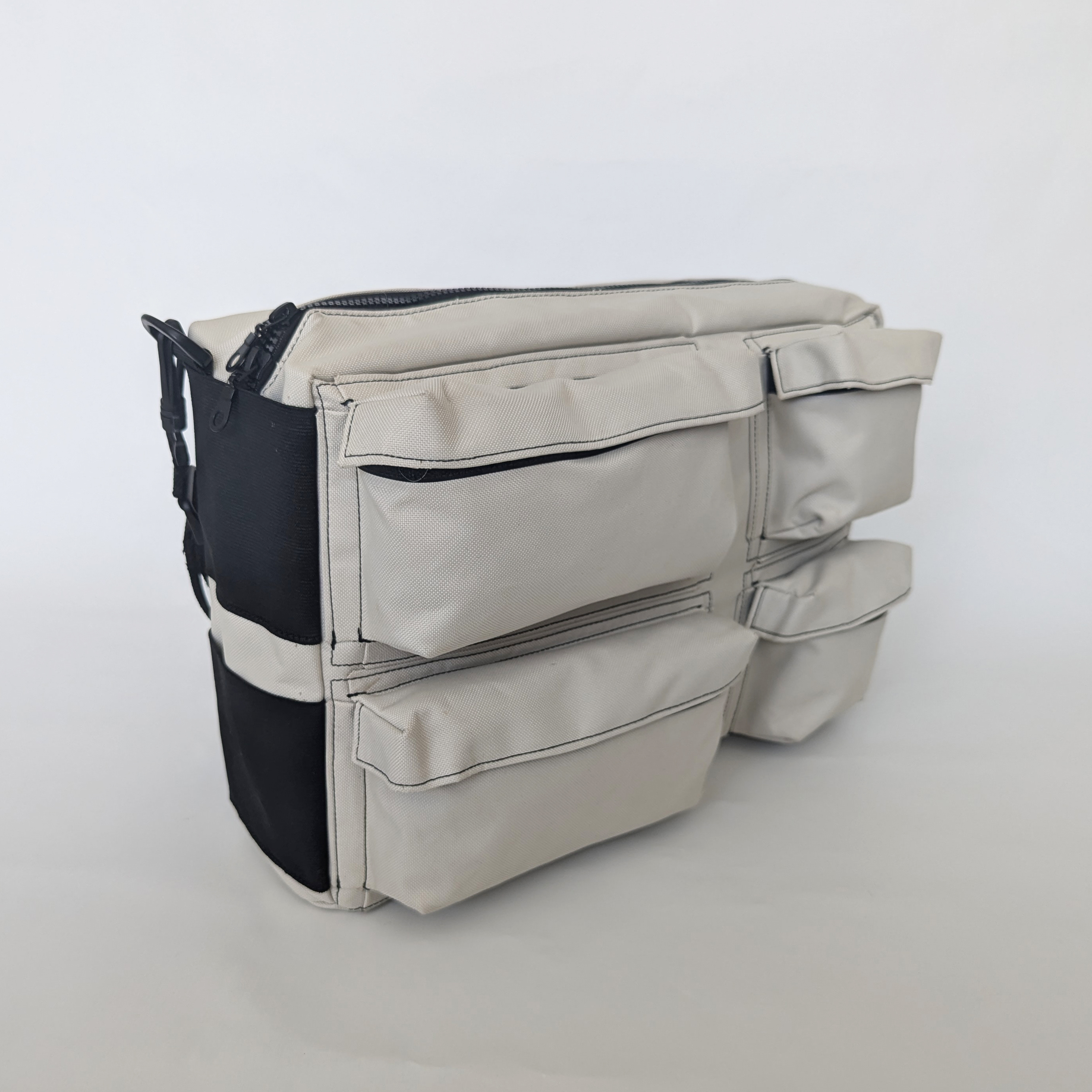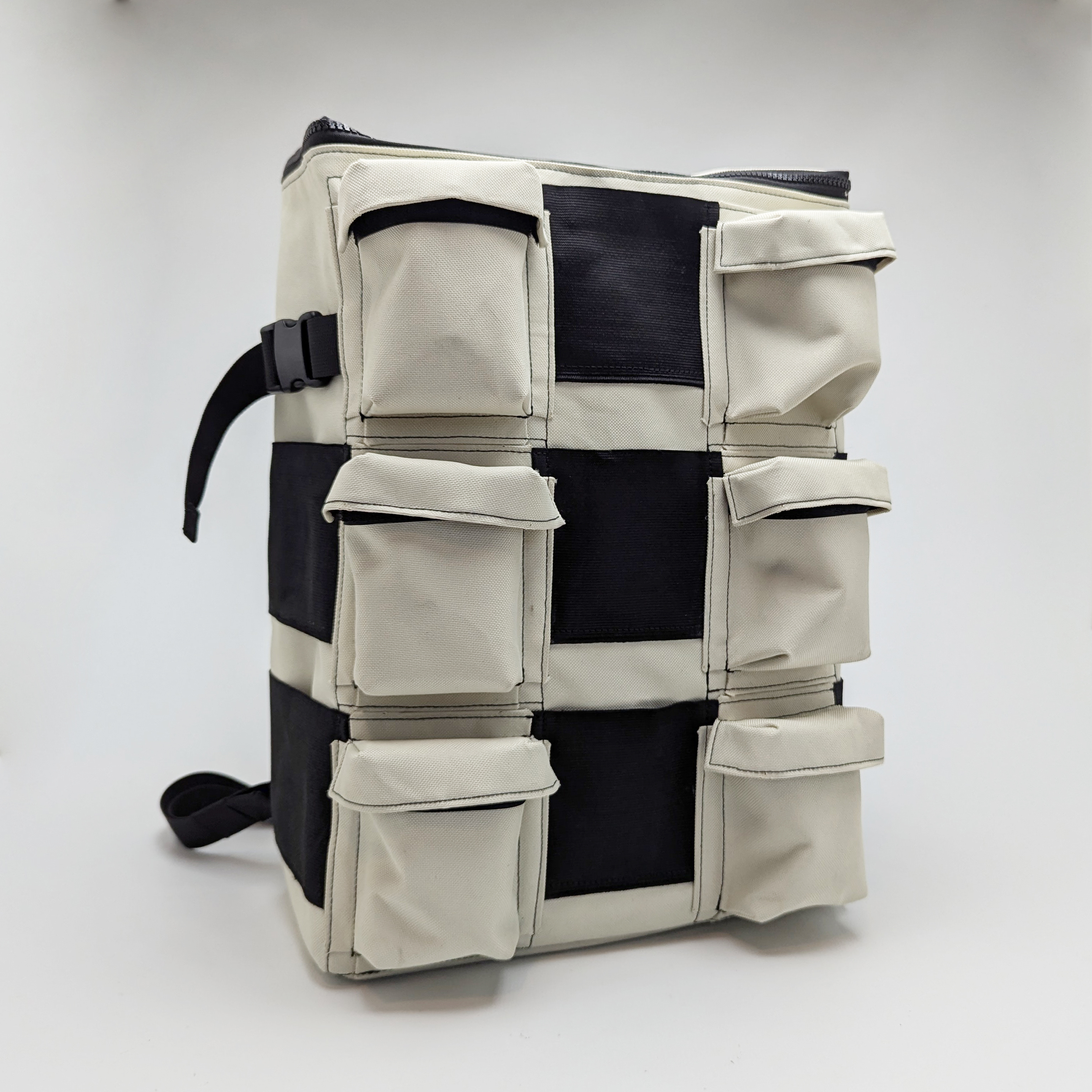 Growing upin Tel-Aviv I have a strong connection to the city, and I still consider it my home. Today I live my life ‘on the road’ moving from one place to another, packing my things every few months and moving them. The fact that I can’t take the city with me led me to create a wearable representation of it, allowing me to take it where ever I go. The International style of architecture came to define the characteristics and aesthetic of Tel Aviv, as it has the largest number of ‘Bauhaus’ buildings in the world. I aim to highlight these characteristics and aesthetical values of Tel Aviv by translating them into bags, creating an object that can move and come with me at any time. Building Bags aims to commemorate the city landscape in bags and create a transferablecity.