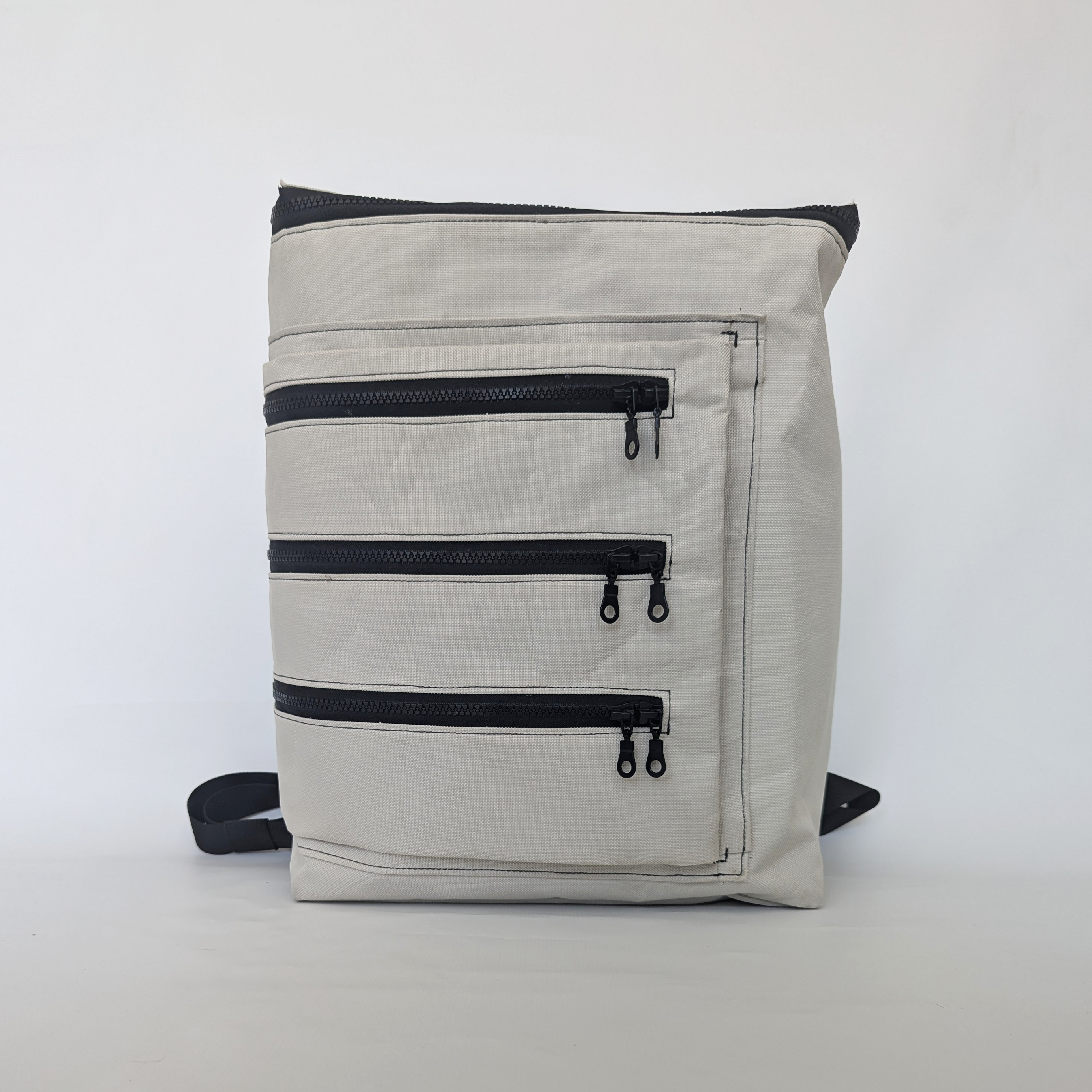 For my translation I took pictures of the selected buildings, then started to analyze them. Balconies become 3D pockets going out of the main surface, windows become flat packets made from elastic black straps, and shading elements become zipper pockets.
