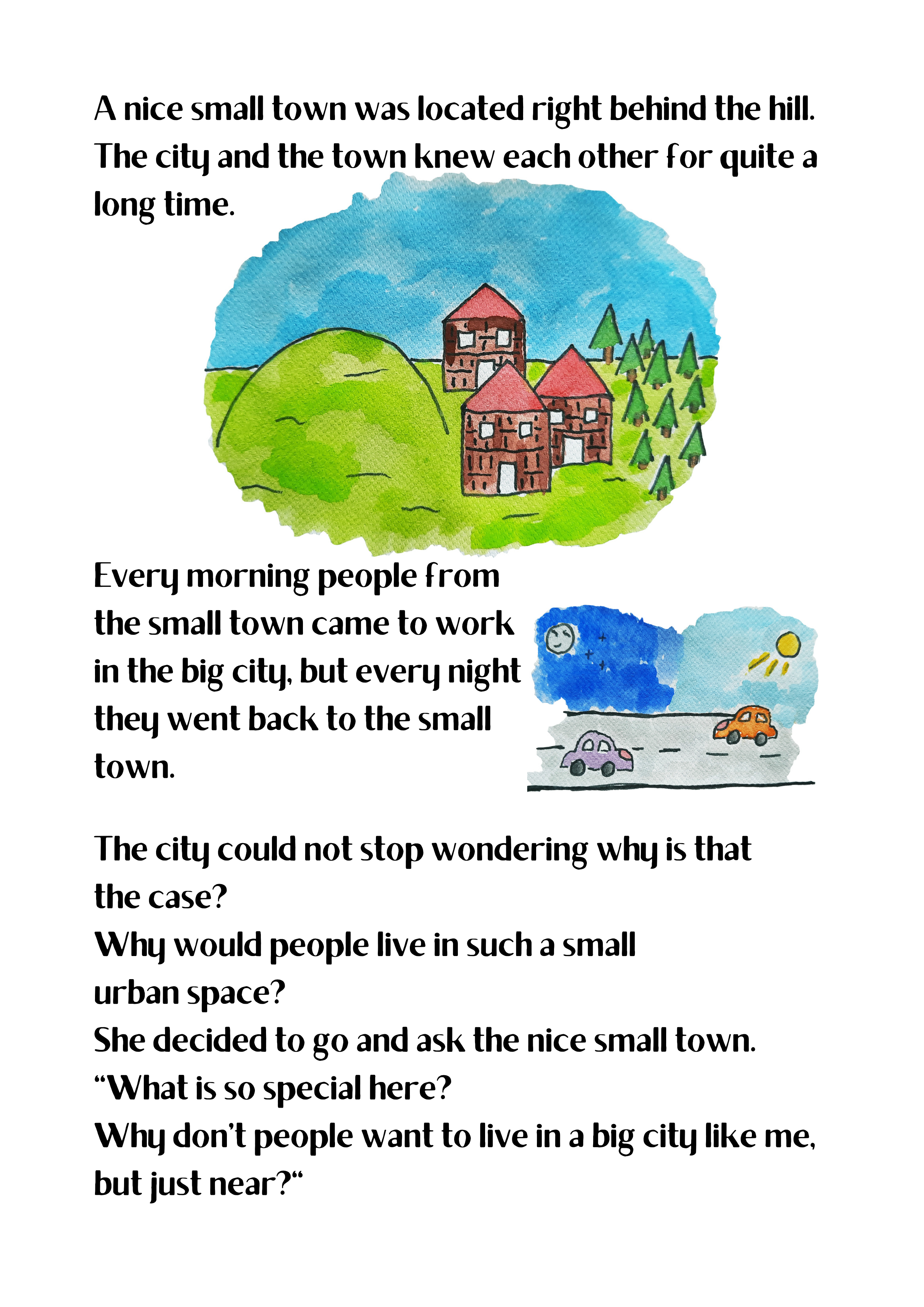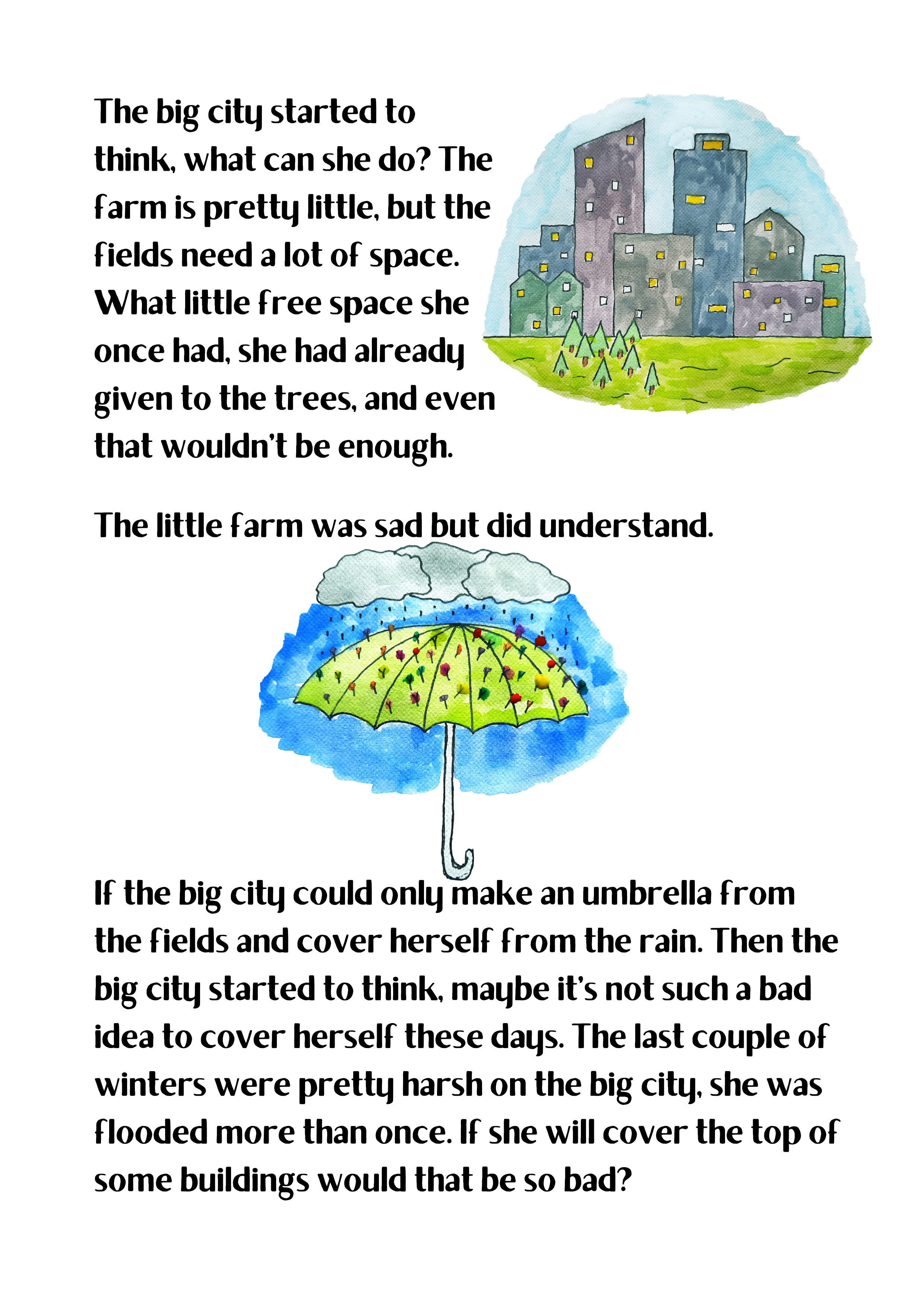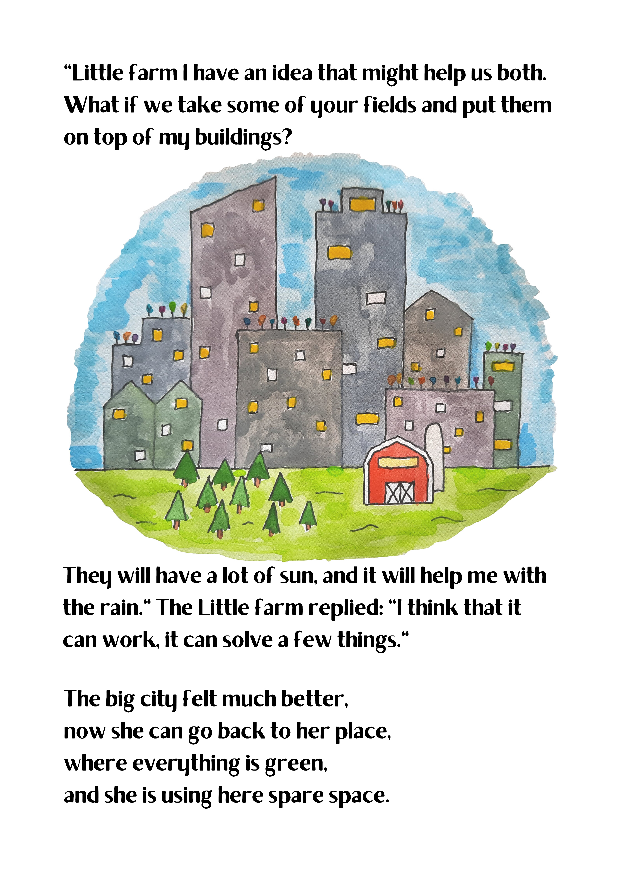 The City That Wanted to Feel Pretty is a short children's story about the struggles of one city and it's encounters with other beings around it. It's goal is to expose people at a young age to the urgency of sustainable cities.
