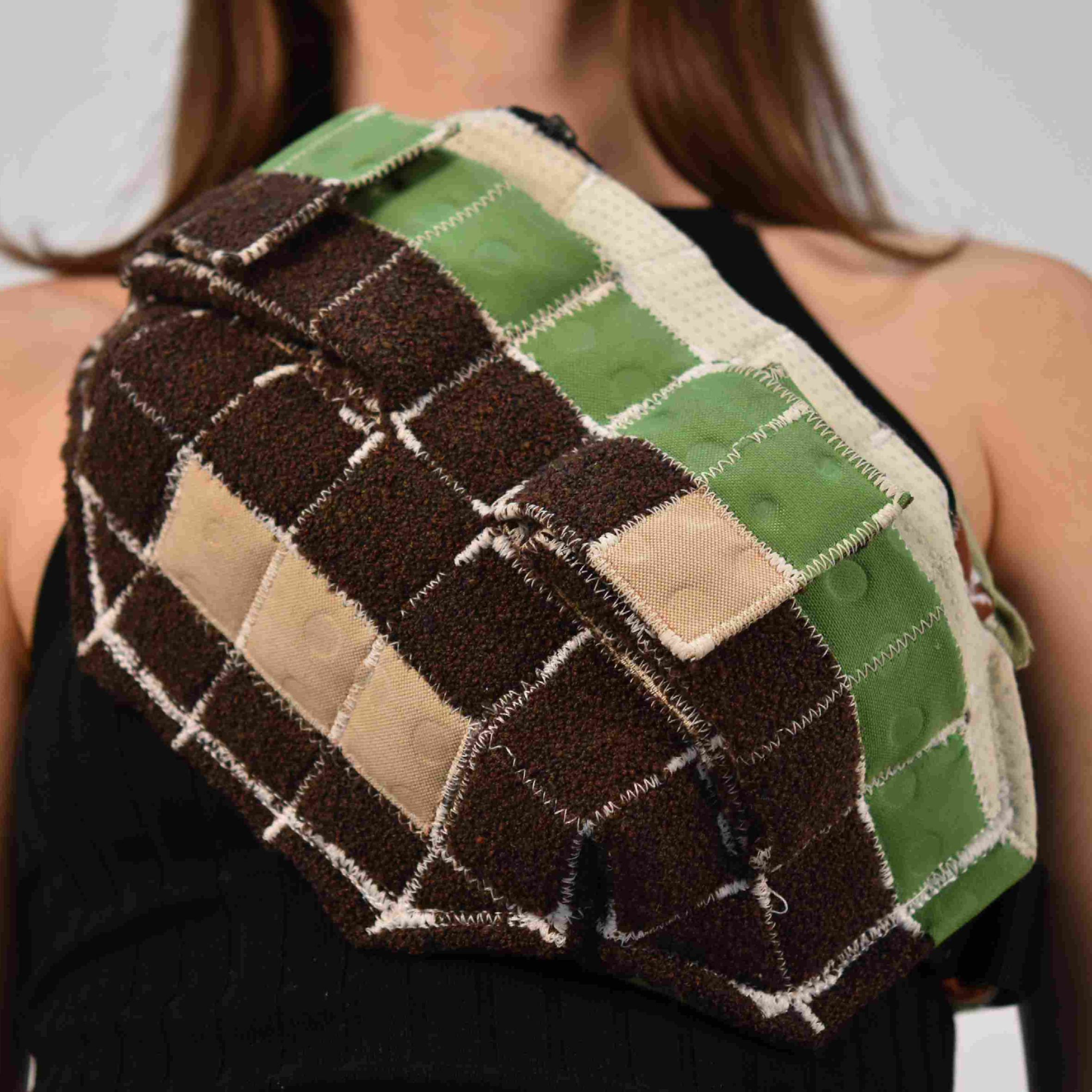 I was inspired by the way that the fabric is woven. The weaving creates small square shapes and texture on the fabric, this reminded of the world of pixels. Inspired by the textures of Kvadrat’s textiles and taking inaccount the urgency in sustainable practices in the textile industry, I designeda series of pouches using leftover fabrics, sewed together as 4x4 cm pixels.